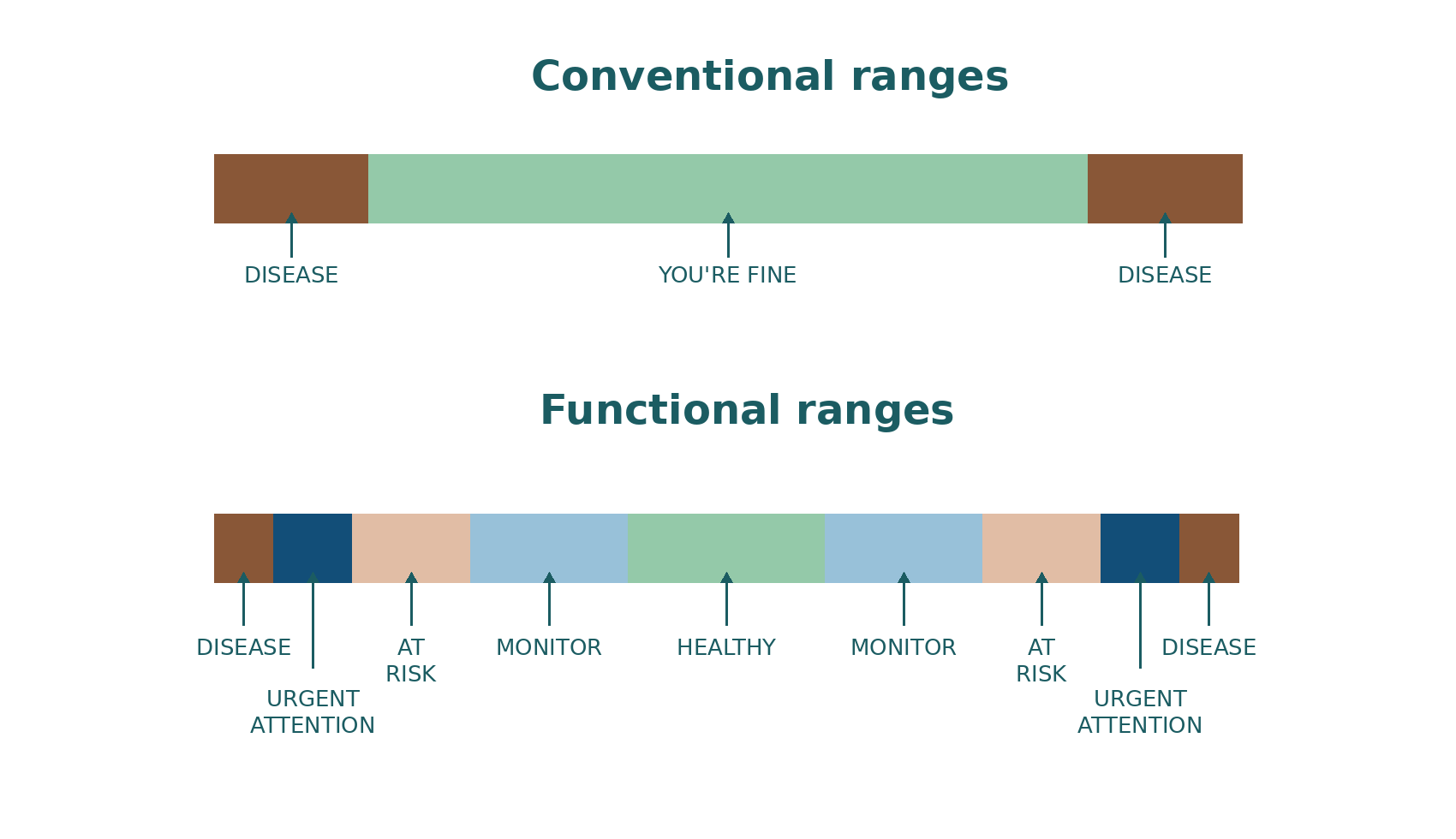 Preventative focus: supporting long-term health, not just chasing symptoms. Assessing how far away from the optimal range you are rather than just following the conventional ranges which are calculated from population averages rather than what is actually healthy.